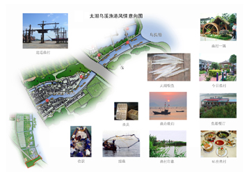 渔港风情:位于核心区乌溪港自然村,以历史上曾为江浙水上交通咽喉,有“乌溪关”之称的乌溪港为依托,以展示渔业文化、渔港风景,体验渔乡风情、渔民生活等为主要功能的旅游景点。挖掘古老渔港的历史遗存和文化底蕴,打造一个富有鲜明太湖地方文化特色的渔港风情景区,融渔家生活体验、历史文化记忆、特色餐饮、旅游休闲观光服务等多功能的文化旅游景点,取名为“渔港风情”。 (规划建设中)
